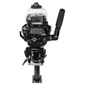 Мотор запускается ручным стартером, а управляется стандартным румпелем с поворотной ручкой газа (гашеткой мотоциклетного типа) с антипроскальзывающими насечками.
